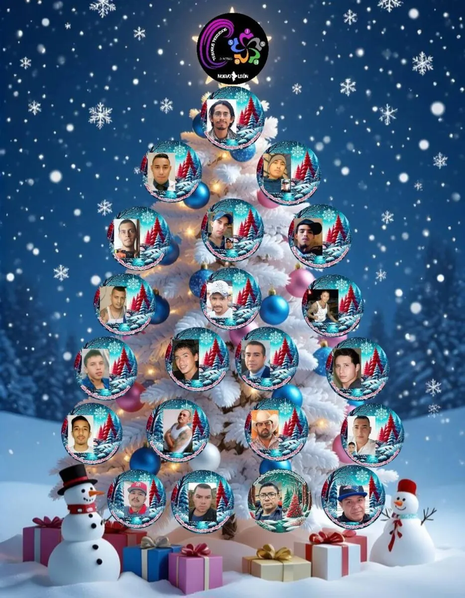 Con el lema “Sin ellos no hay Navidad”, integrantes del colectivo Amor por los Desaparecidos instalaron en Reynosa un árbol navideño distinto: en lugar de esferas brillantes, colgaron los rostros de quienes un día salieron de casa y no regresaron. Lo llamaron “El Pino de la Esperanza”, símbolo del anhelo que se niega a morir.