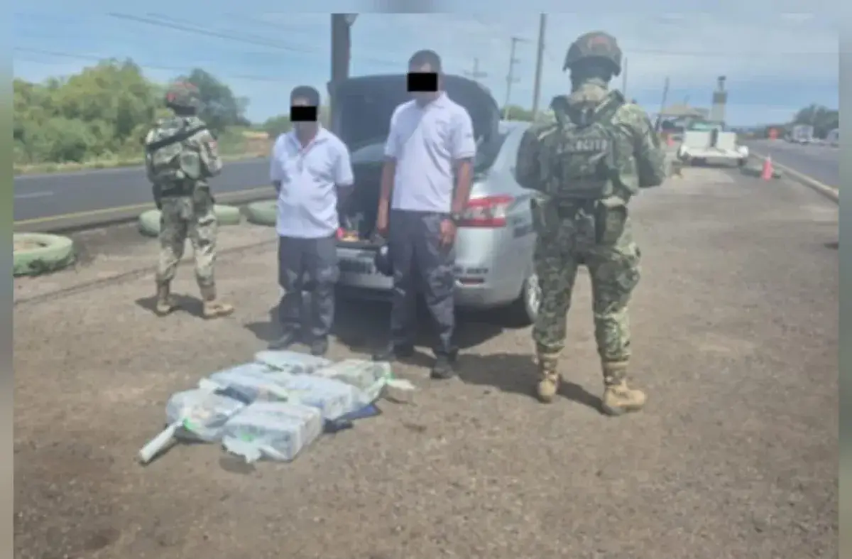 Durante trabajos implementados en el Puesto Militar de Seguridad Estratégica “El Desengaño”, en el municipio de Ahome, los elementos militares realizaron una revisión a un vehículo oficial de una empresa de seguridad privada, en el que viajaban dos masculinos.