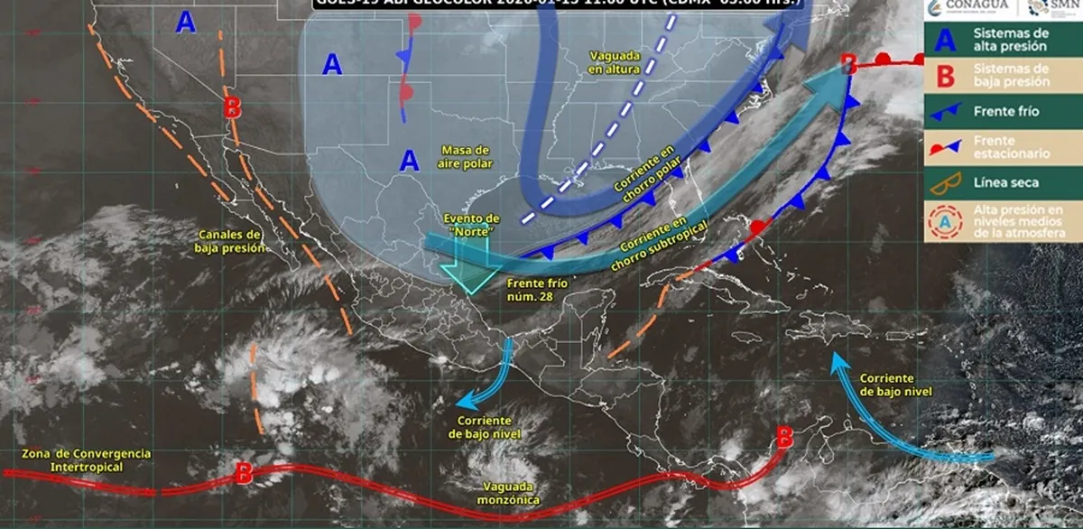 Aunque se prevé que estos sistemas dejen de afectar al país paulatinamente, la tarde del viernes marcará el ingreso de un nuevo frente frío (No. 29) sobre el norte y noreste de México.