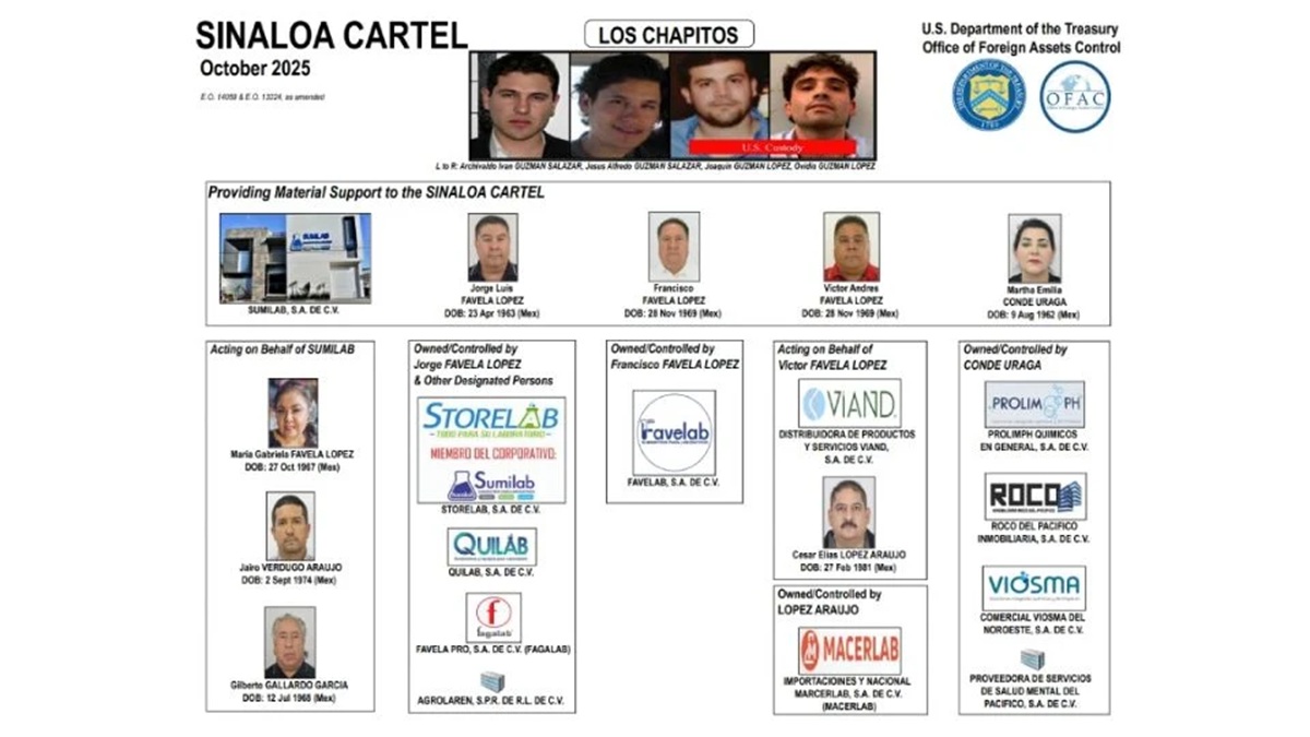 La familia dirige la empresa Sumilab, sancionada ya en 2023 por la OFAC, pero que continuó con sus operaciones en el suministro de estos precursores.